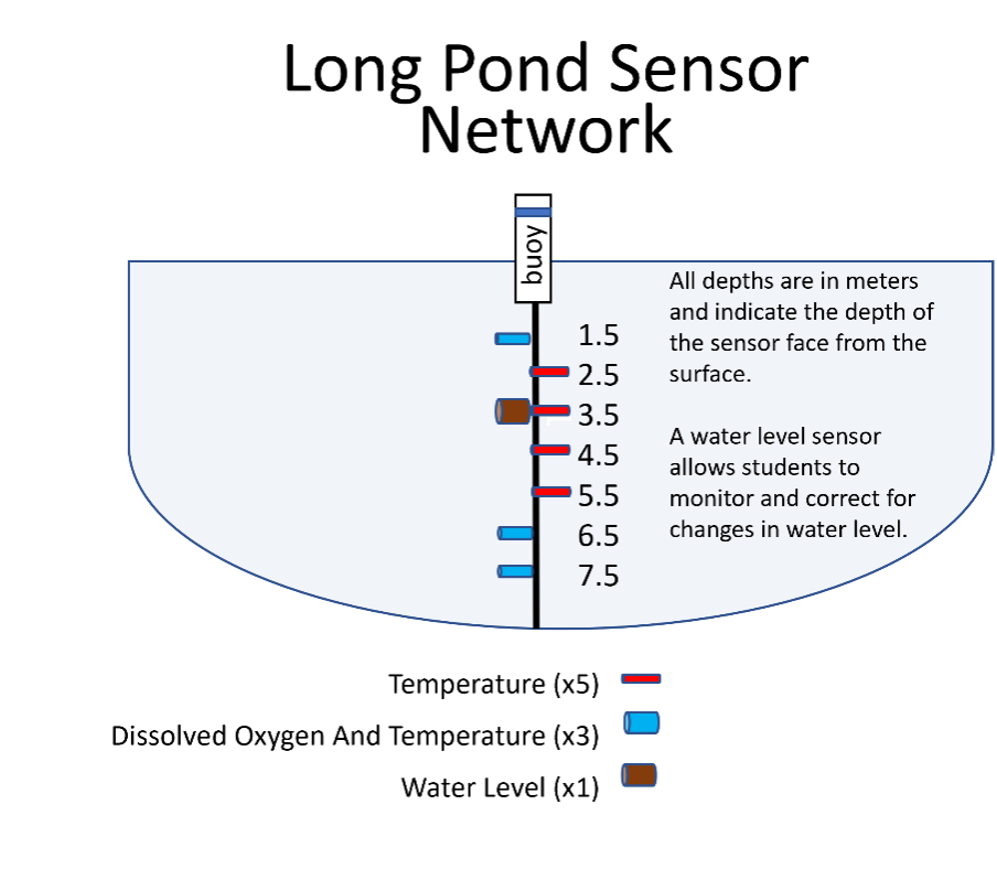 Diagram of sensor network at Long Pond. Measurements are recorded 24 hours a day, 7 days a week!